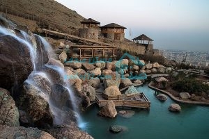 این آبشار با الهام از باغهای سنتی ایرانی به صورت طبقه طبقه ساخته شده است که هر طبقه شامل فضای سبز، آلاچیق و برکهای متفاوت از طبقه دیگر میباشد. در ساخت این آبشار از مصالحی استفاده شده است که با طبیعت همخوانی دارند.