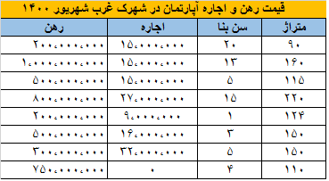 قیمت رهن و اجاره آپارتمان در شهرک غرب تهران سال 1400